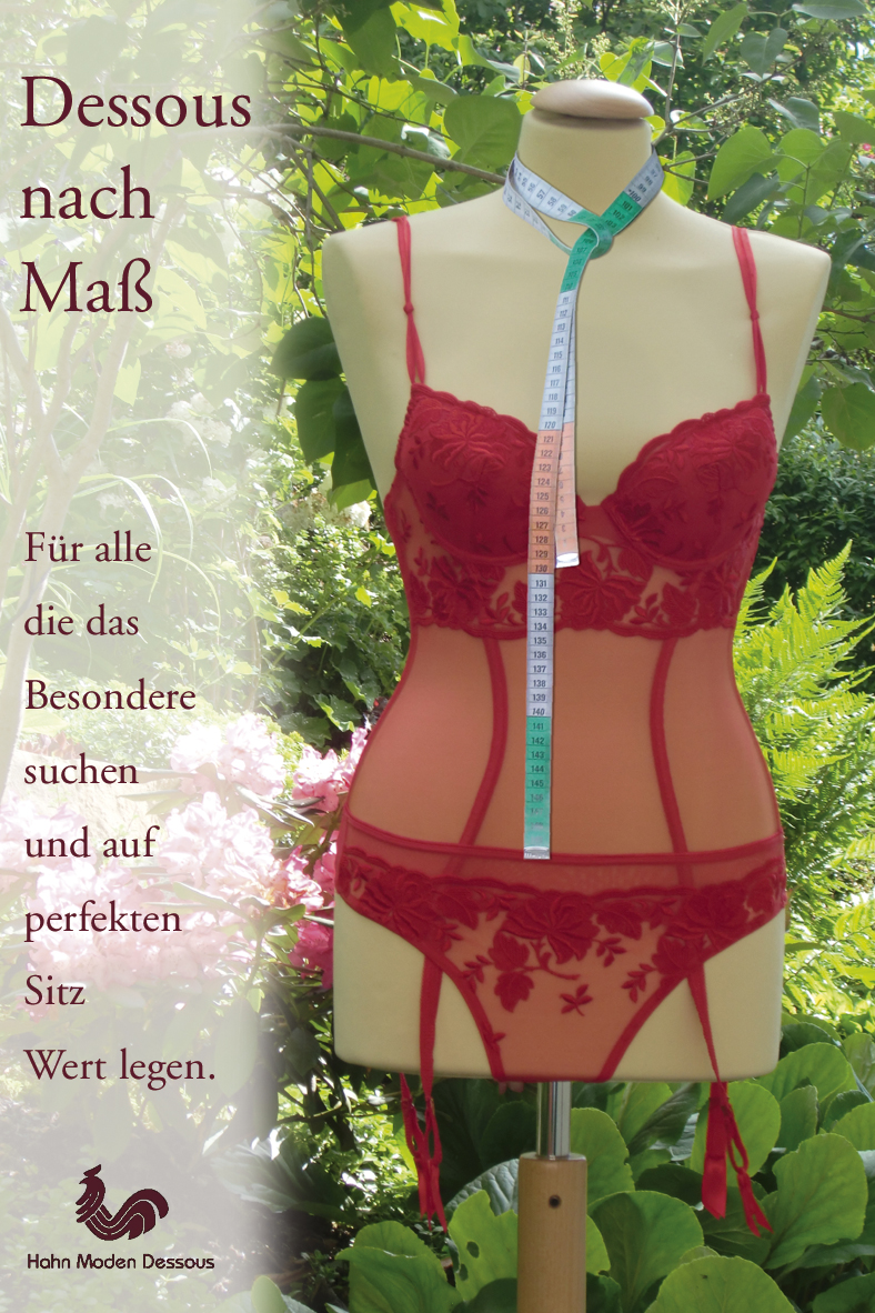 Als speziellen Service gehen wir mit unserer Maßfertigung auf die individuellen Bedürfnisse der Kunden vor Ort ein. Das heißt, Sie entscheiden mit uns gemeinsam über Modell und Farbe Ihrer einzigartigen Dessous und erhalten so Ihr exklusivis Einzelstück. Unser Größensortiment reicht von A- bis E-Cup.